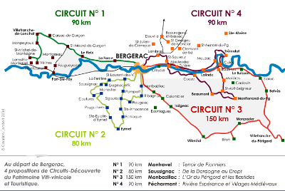 Le vignoble s’étend sur les collines qui bordent la Dordogne et regroupe plusieurs appellations reconnues :