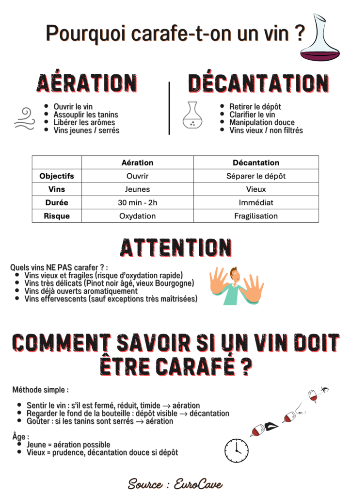 Carafer un vin n’est donc pas un geste automatique, mais plutôt une décision à adapter au type de vin et à son âge.